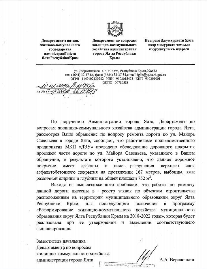 айГражданинОтправлено 21.02.2019: "Администрация города Ялты республики Крым"