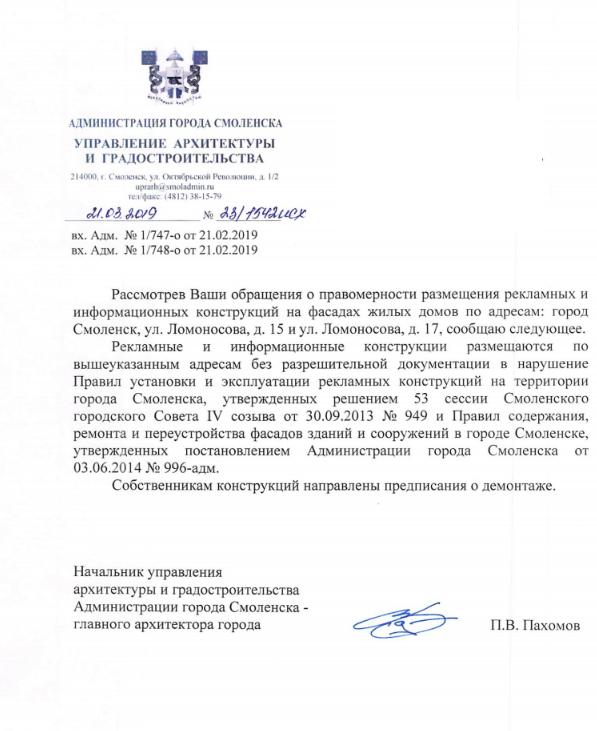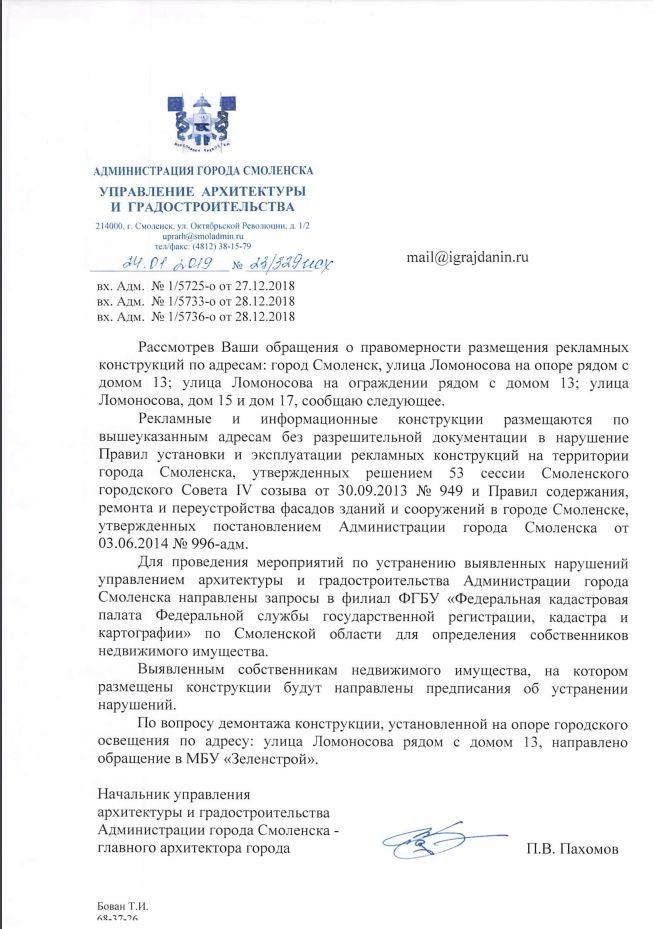 айГражданинОтправлено 20.02.2019: "Администрация города Смоленска"