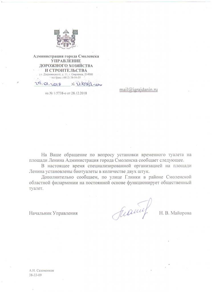 айГражданинОтправлено 28.12.2018: "Администрация города Смоленска"