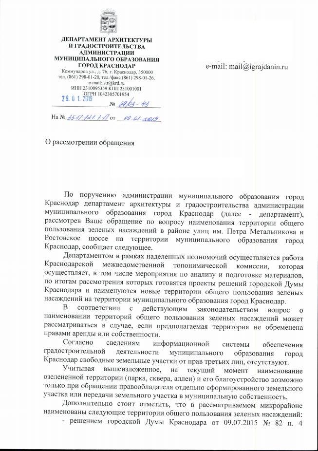 айГражданинОтправлено 05.01.2019: "Администрация муниципального образования г. Краснодар"