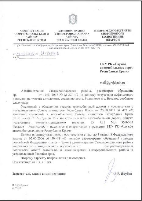 айГражданинОтправлено 05.01.2019: "Администрация Симферопольского района республики Крым"