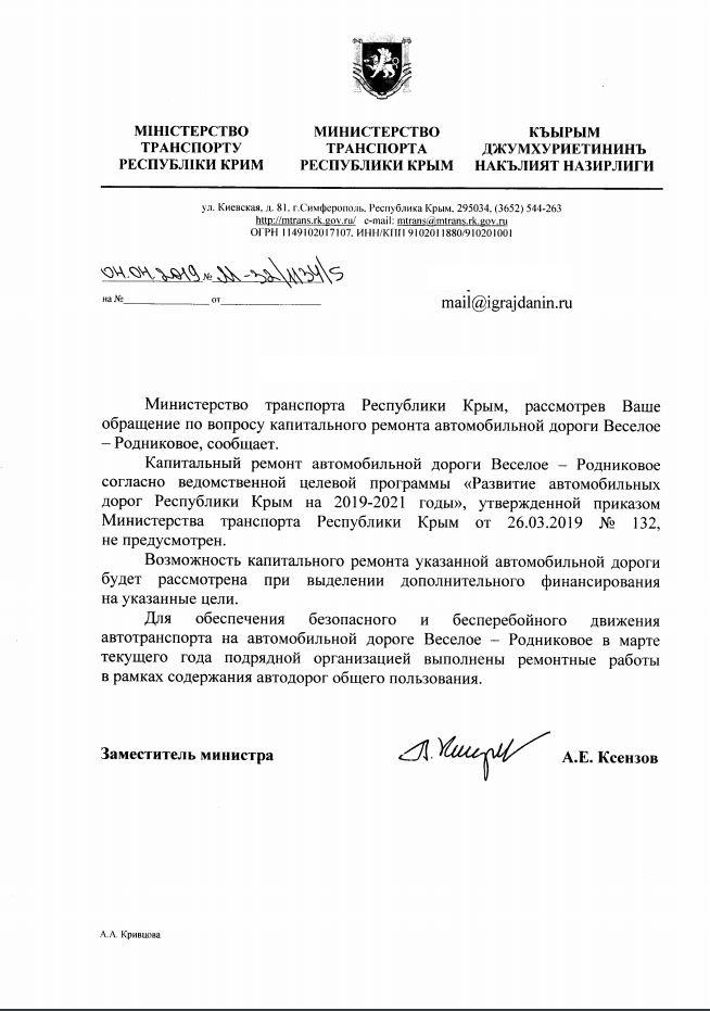 айГражданинОтправлено 22.03.2019: "Министерство транспорта Республики Крым"
