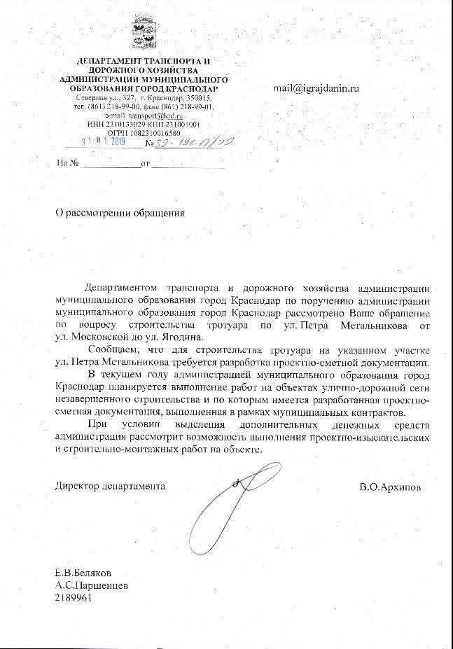 айГражданинОтправлено 09.01.2019: "Администрация муниципального образования г. Краснодар"