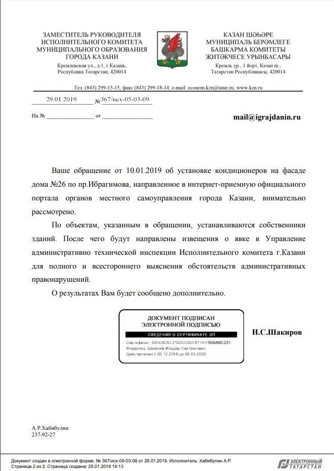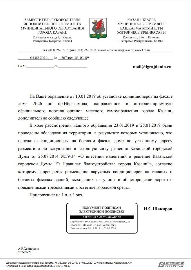 айГражданинОтправлено 10.01.2019: "Мэрия Казани республики Татарстан"