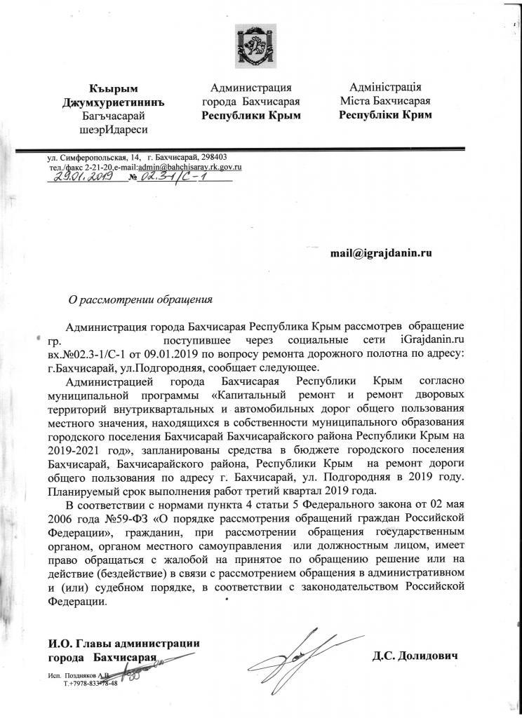 айГражданинОтправлено 09.01.2019: "Администрация города Бахчисарая Республики Крым"