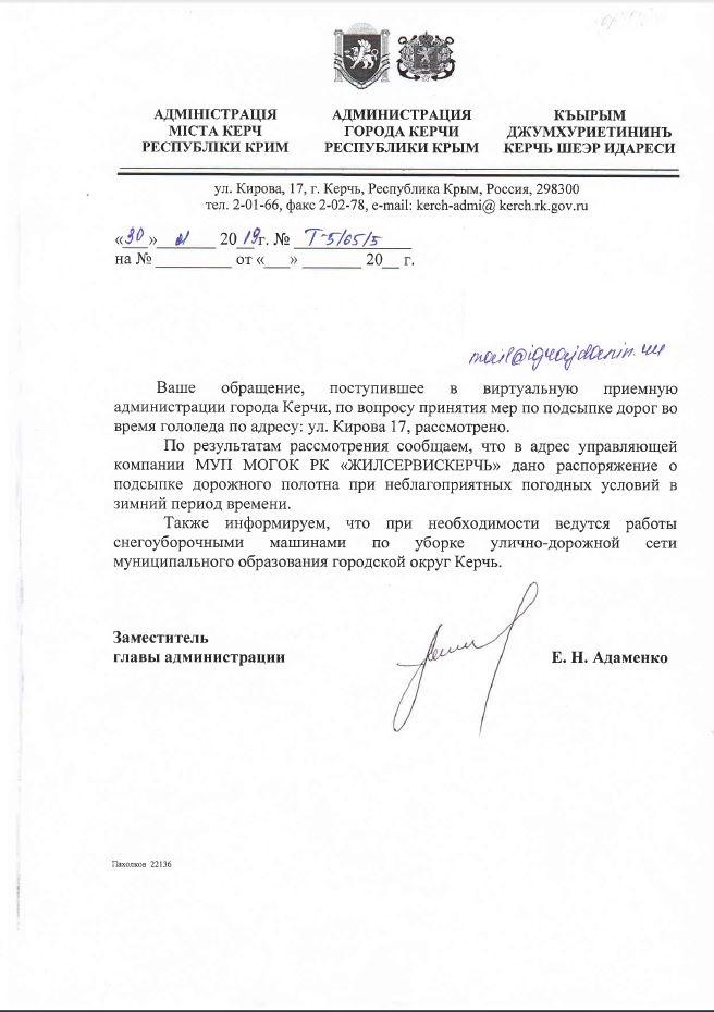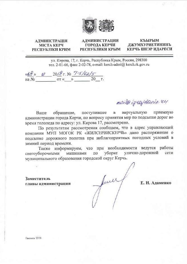 айГражданинОтправлено 10.01.2019: "Администрация города Керчи Республики Крым"