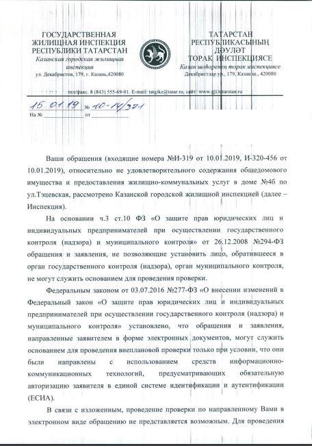 айГражданинОтправлено 10.01.2019: " Государственная жилищная инспекция Республики Татарстан"