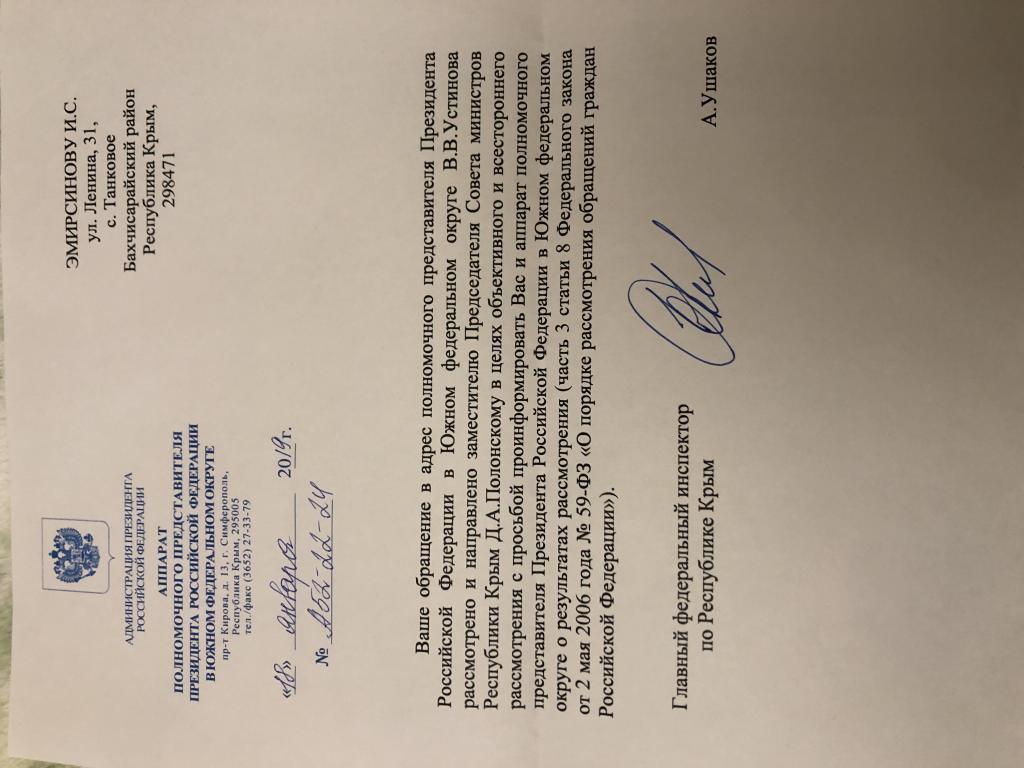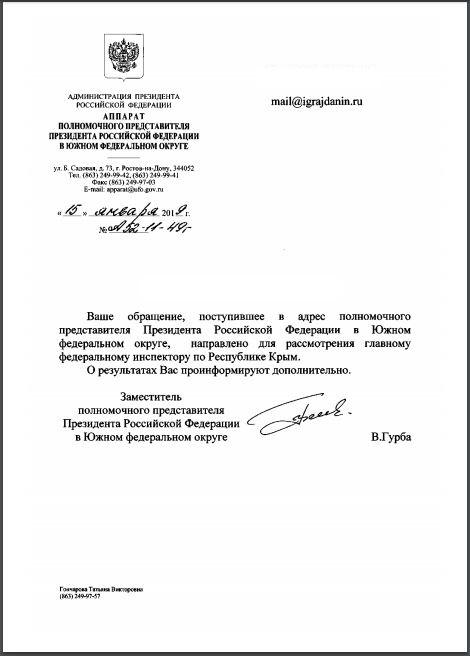 айГражданинОтправлено 10.01.2019: "Полномочный представитель Президента Российской Федерации в Южном федеральном округе"