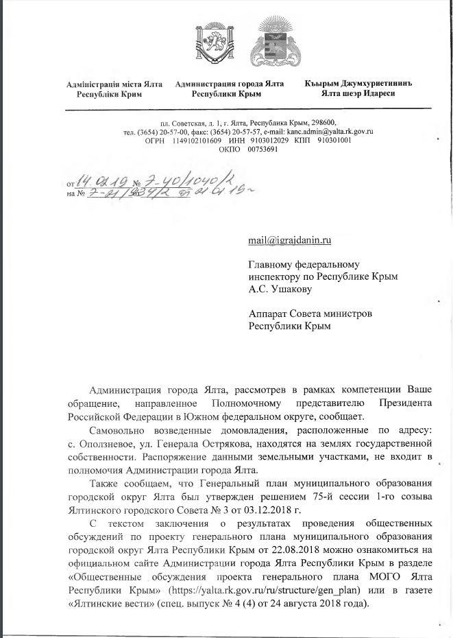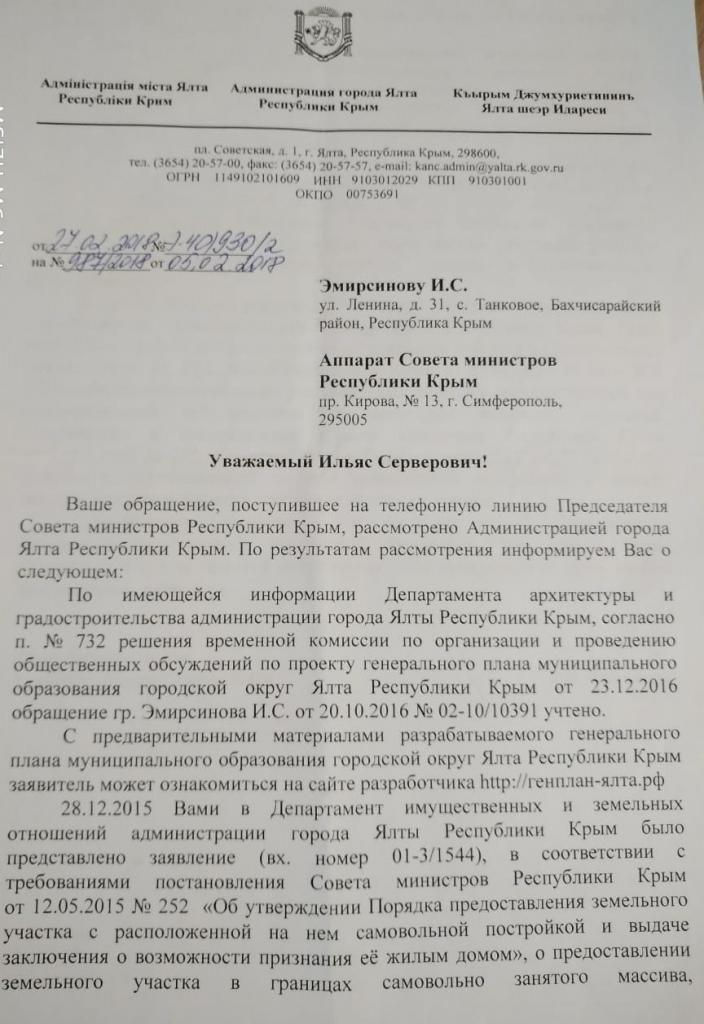айГражданинОтправлено 15.02.2019: "Администрация города Ялты республики Крым"