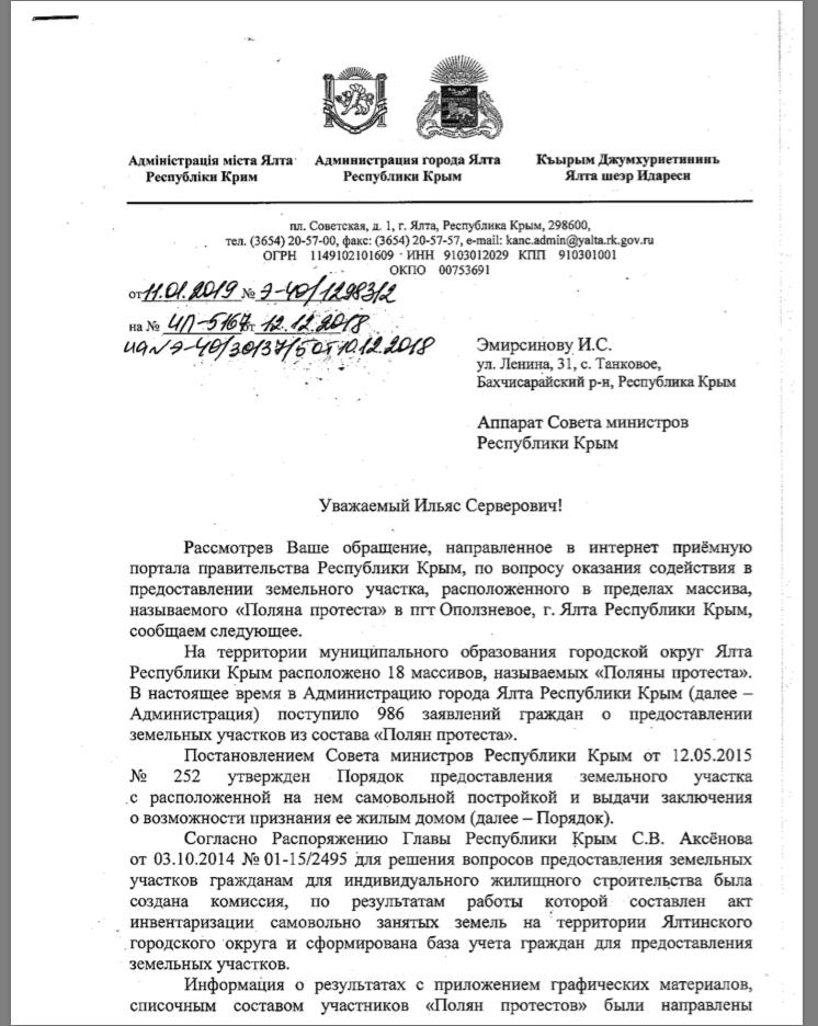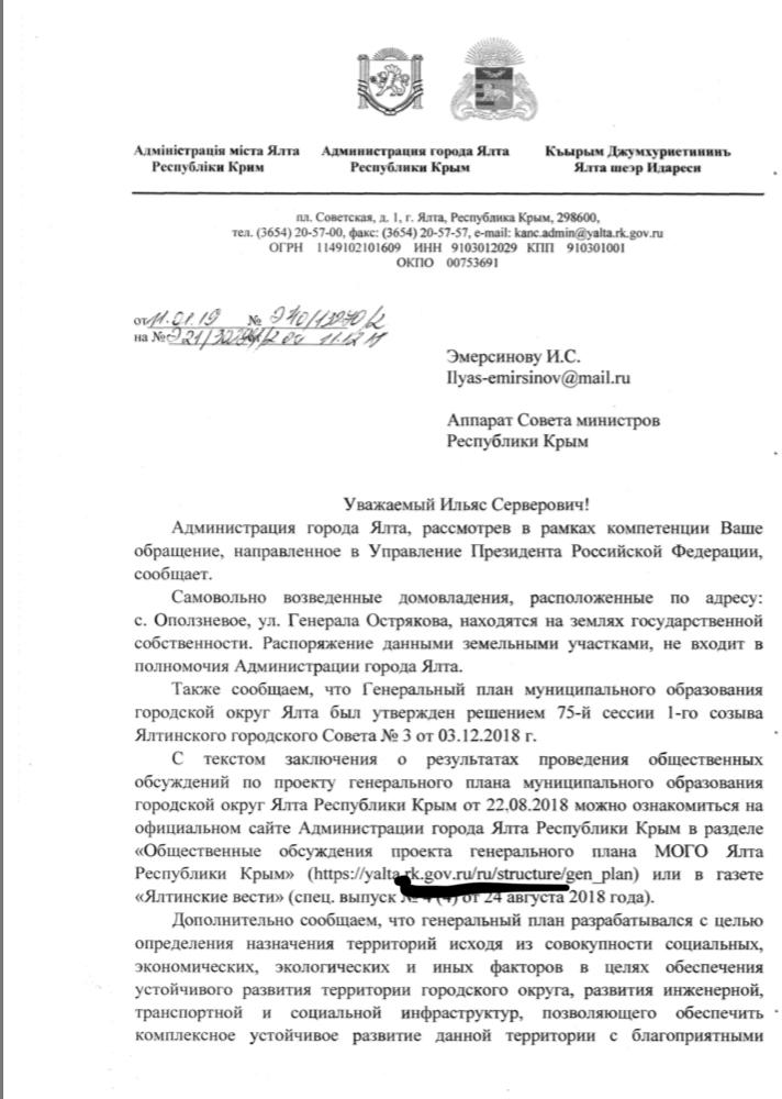 айГражданинОтправлено 10.01.2019: "Администрация города Ялты республики Крым"
