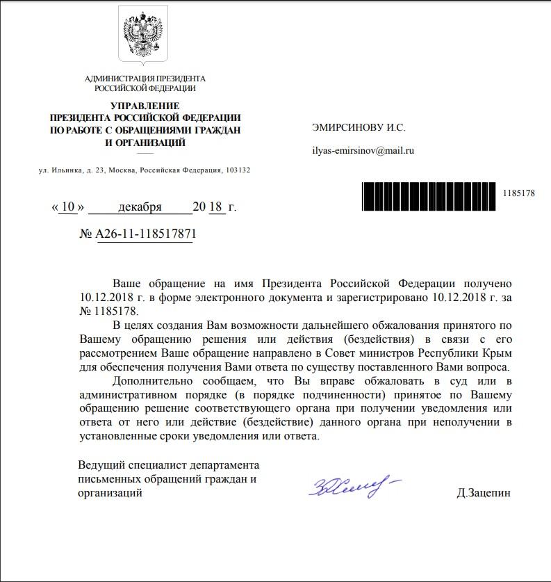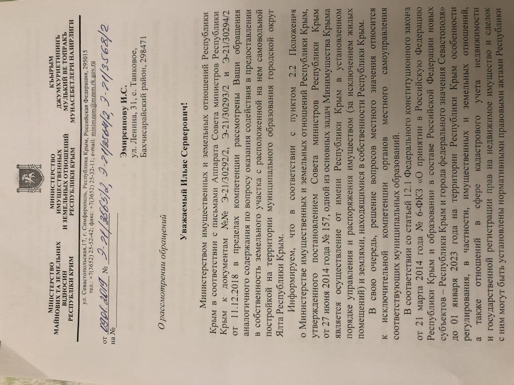 айГражданинОтправлено 10.01.2019: "Министерство имущественных и земельных отношений Республики Крым"