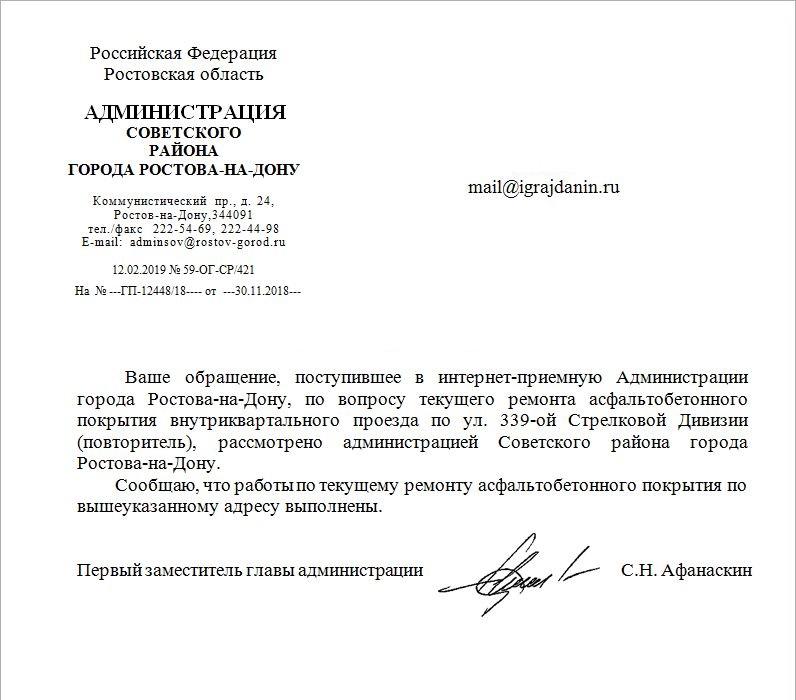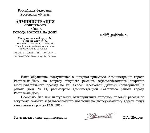 айГражданинОтправлено 13.01.2019: "Администрация города Ростов-на-Дону"