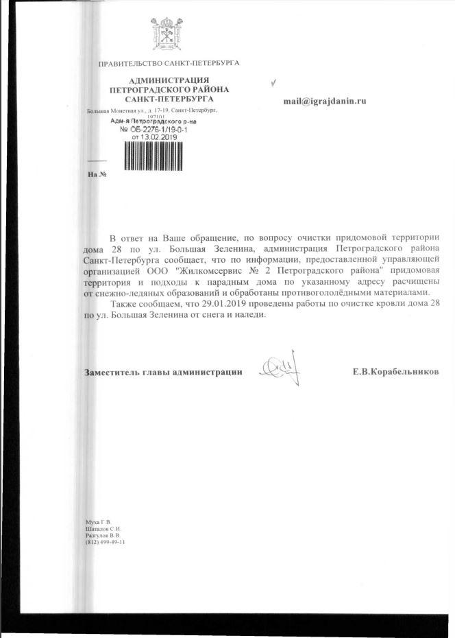 айГражданинОтправлено 15.01.2019: "Администрация Петроградского района Санкт-Петербурга"