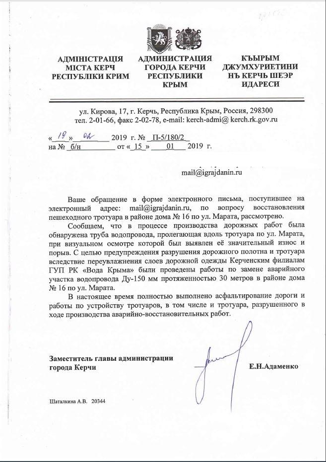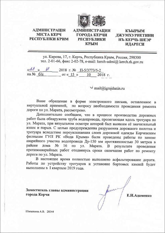 айГражданинОтправлено 15.01.2019: "Администрация города Керчи Республики Крым"