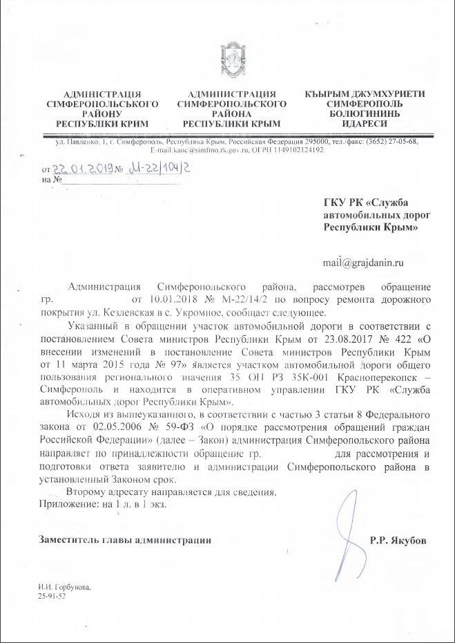 айГражданинОтправлено 15.01.2019: "Администрация Симферопольского района республики Крым"