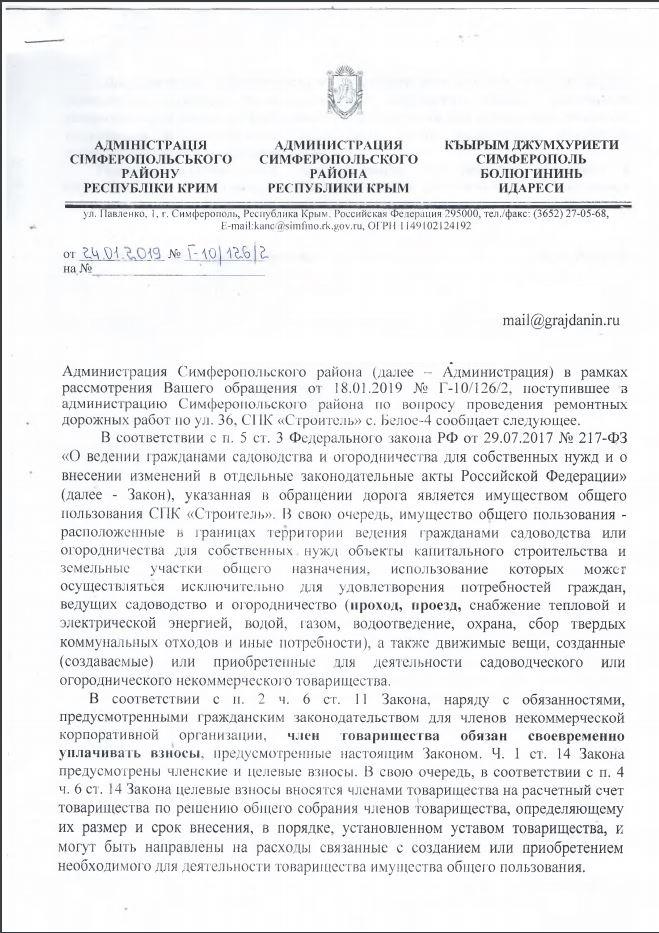 айГражданинОтправлено 16.01.2019: "Администрация Симферопольского района республики Крым"