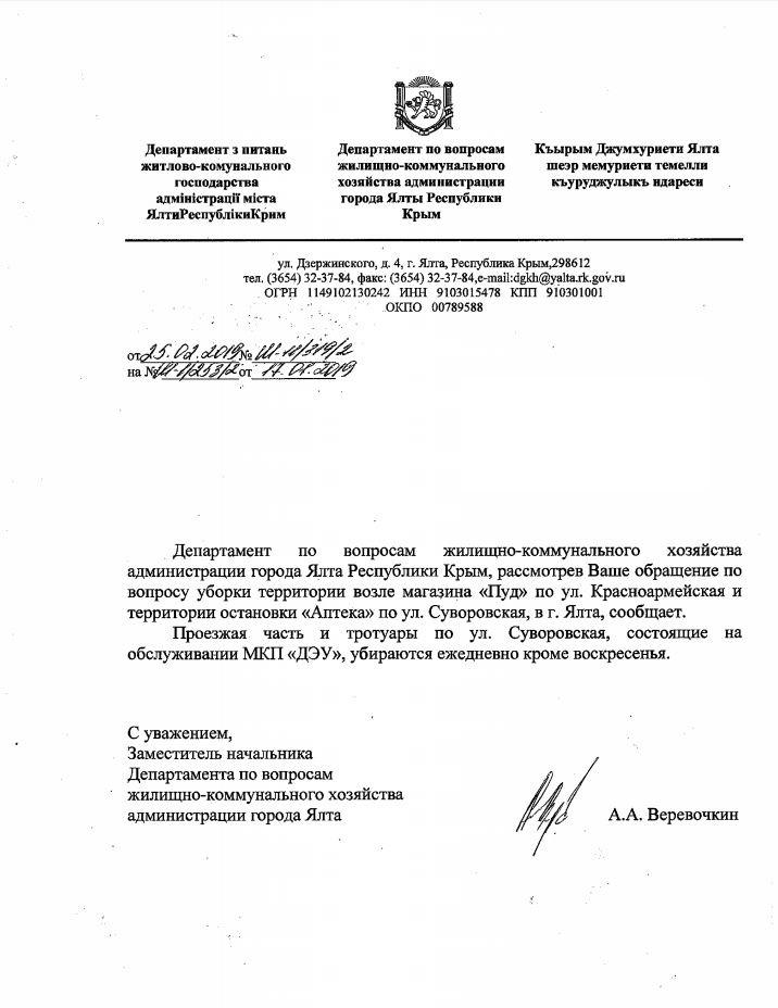 айГражданинОтправлено 16.01.2019: "Администрация города Ялты республики Крым"