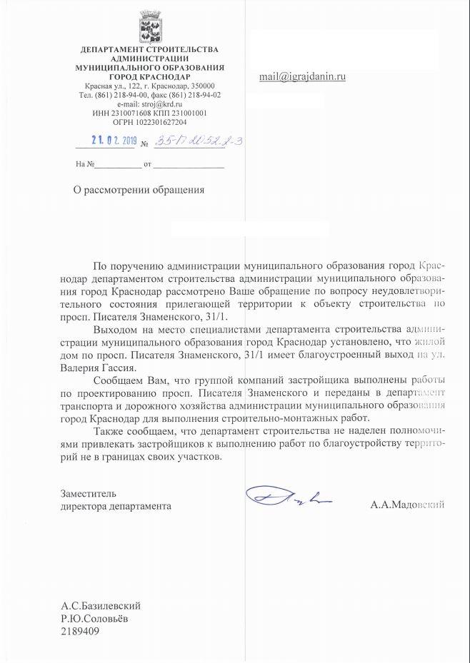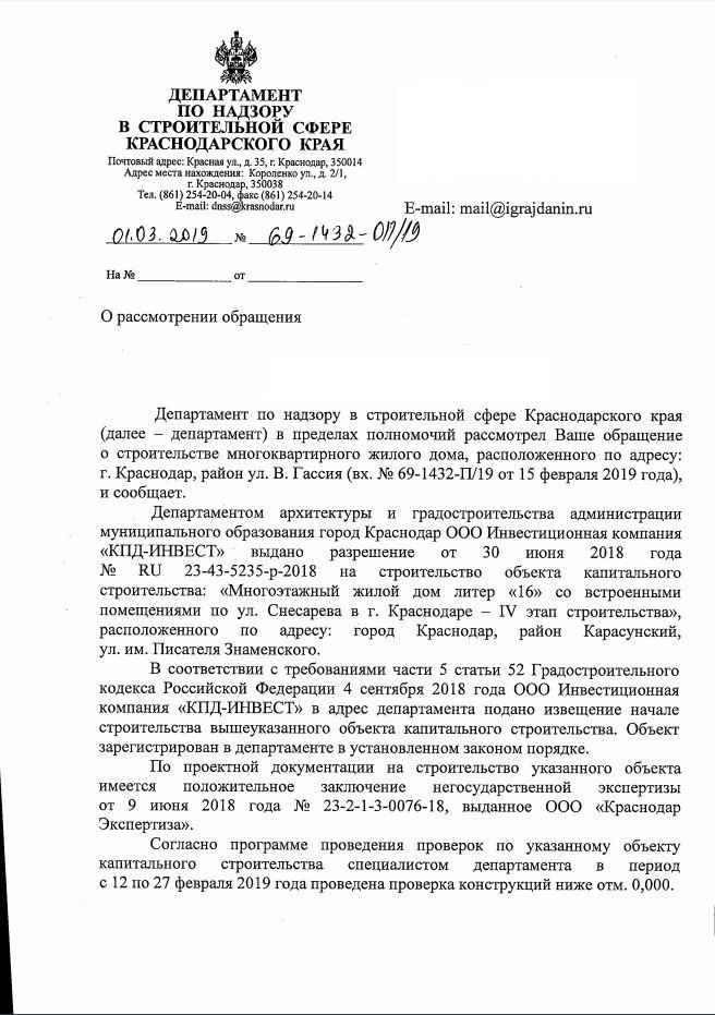 айГражданинОтправлено 15.02.2019: "Департамент по надзору в строительной сфере Краснодарского края"