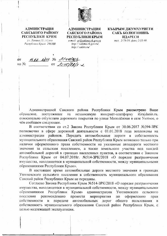 Отправлено 23.01.2019: "Администрация Сакского района Республики Крым"