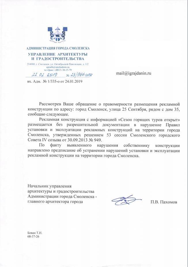 айГражданинОтправлено 23.01.2019: "Администрация города Смоленска"