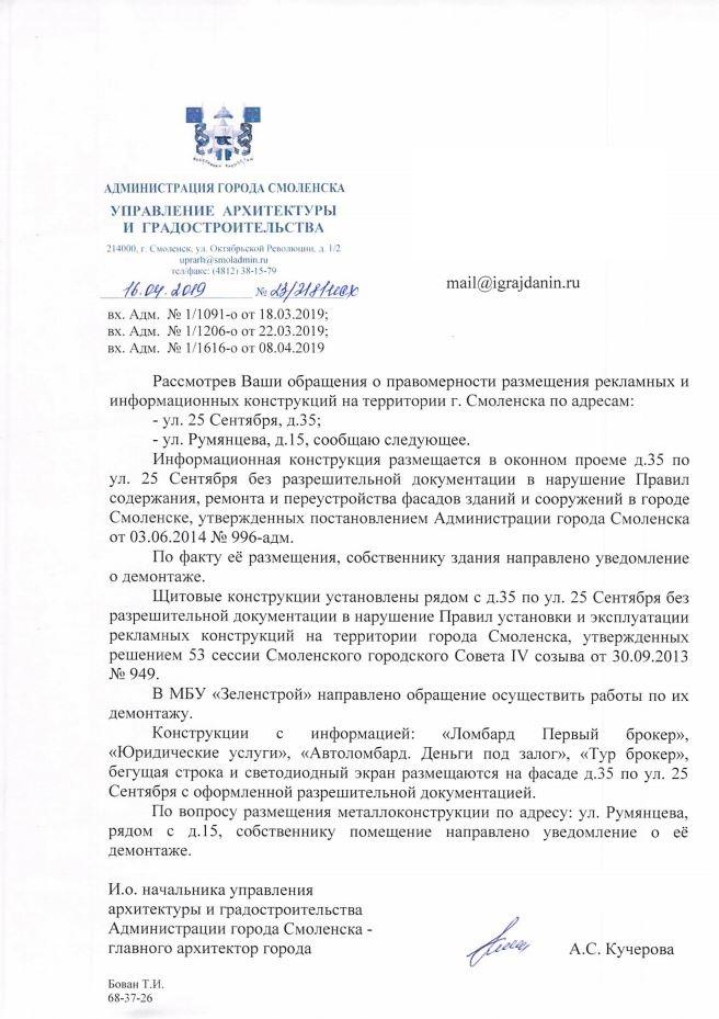 айГражданинОтправлено 15.03.2019: "Администрация города Смоленска"