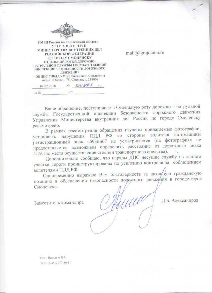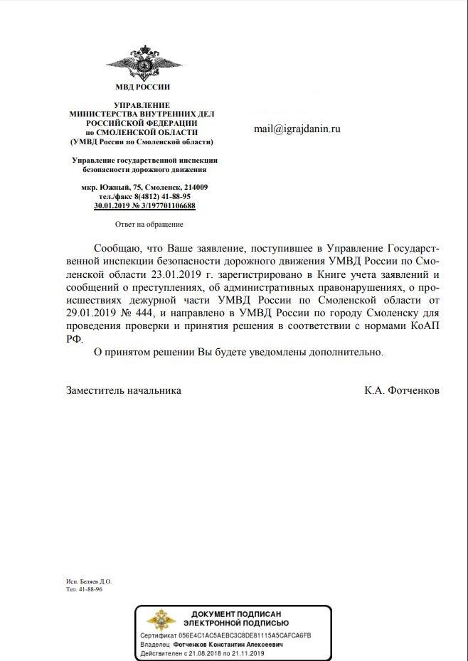 айГражданинОтправлено 23.01.2019: "УГИБДД УМВД России по Смоленской области"