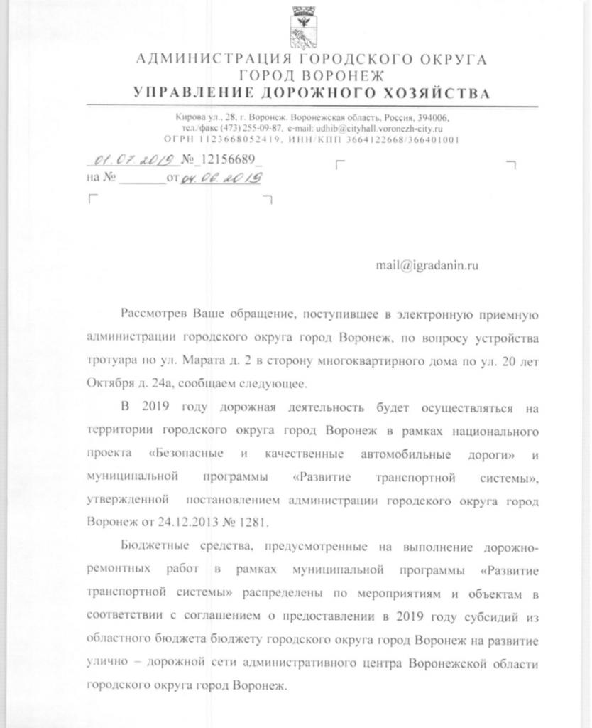 айГражданинОтправлено 04.06.2019: "Администрация городского округа города Воронеж"