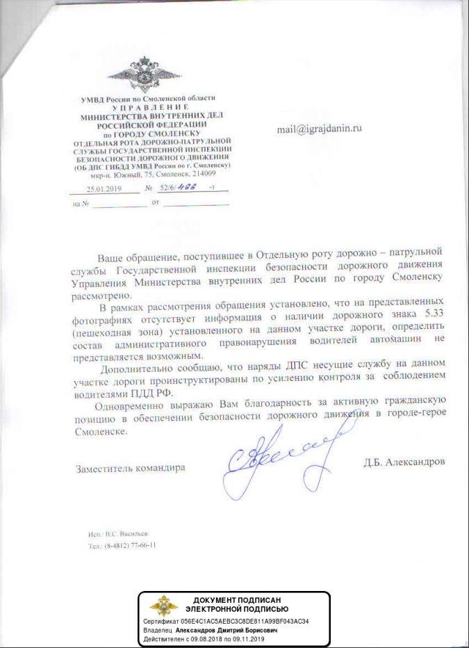 айГражданинОтправлено 23.01.2019: "УГИБДД УМВД России по Смоленской области"