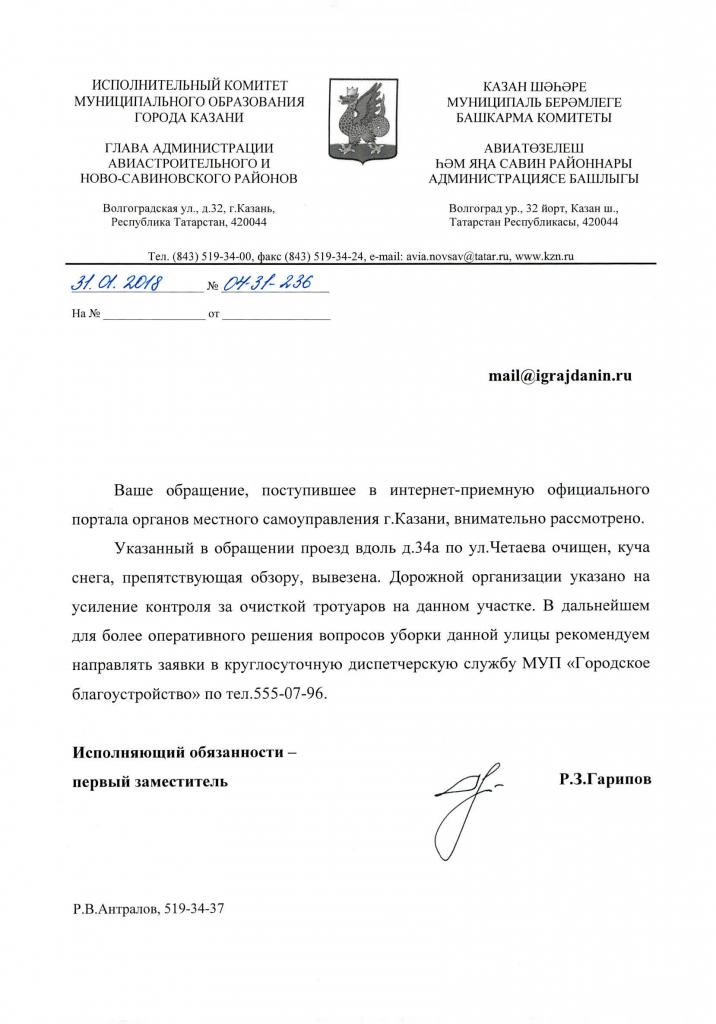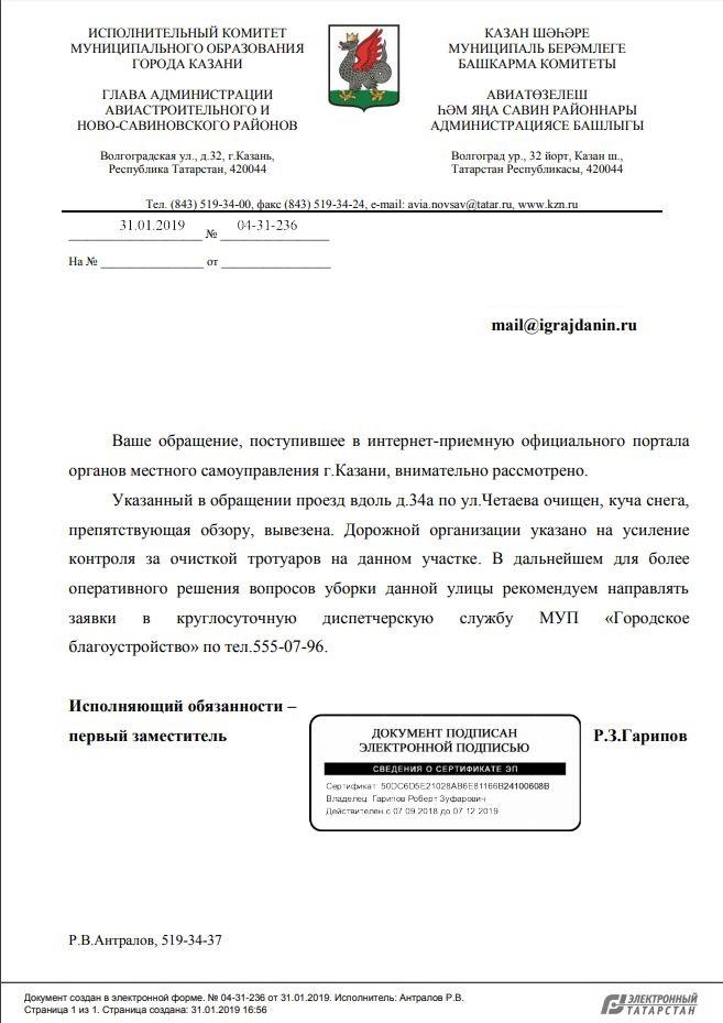 айГражданинОтправлено 23.01.2019: "Мэрия Казани республики Татарстан"