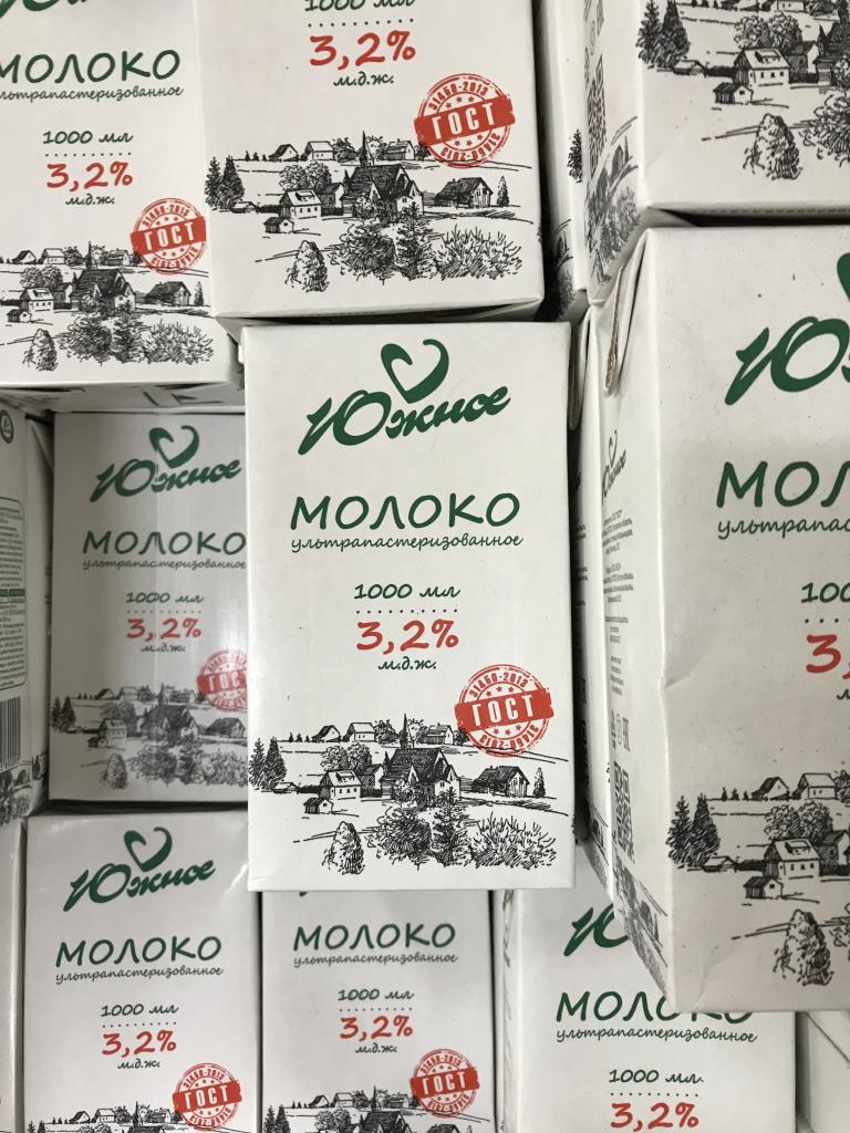 6) Молоко питьевое «Южное», МДЖ 3,2 % (ГОСТ 31450-2013; объем: 1 литр; изготовитель: ООО "ВСР", 347700, Российская Федерация, Ростовская область. Кагальницкий район, станица Кагальницкая, ул. Почтовая. 151), по цене 35 руб;