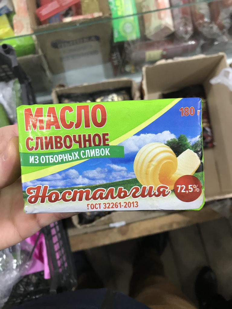 1) Масло сливочное "Ностальгия", МДЖ 72,5 % (ГОСТ 32261-2013; масса нетто: 0,180 кг; дата изготовления - 05.01.19; произведено: ООО "Курский молочный завод", 305001, Российская Федерация, г. Курск, ул. Дружининская, 33 "А", офис 8; Адрес производства: 305019, Российская Федерация, г. Курск, ул. 9-го Января, 1), по цене 30 руб;
