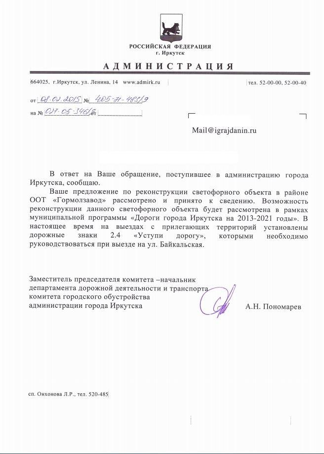 айГражданинОтправлено 24.01.2019: "Администрация города Иркутска"