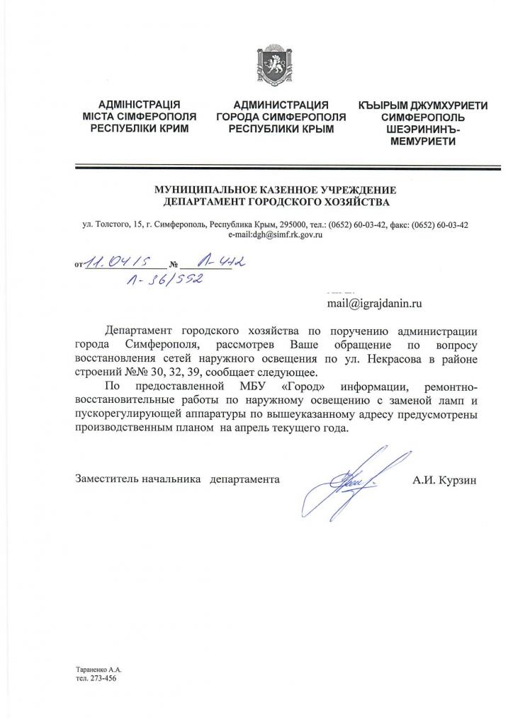 айГражданинОтправлено 09.04.2019: "Администрация города Симферополя"