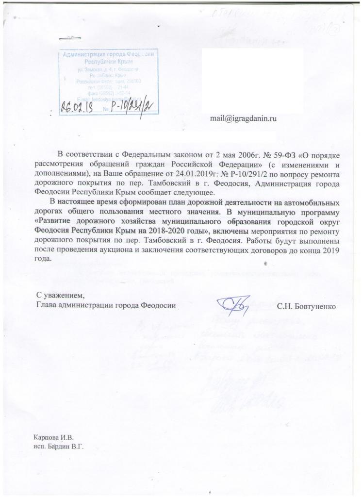айГражданинОтправлено 24.01.2019: "Администрация города Феодосии республики Крым"