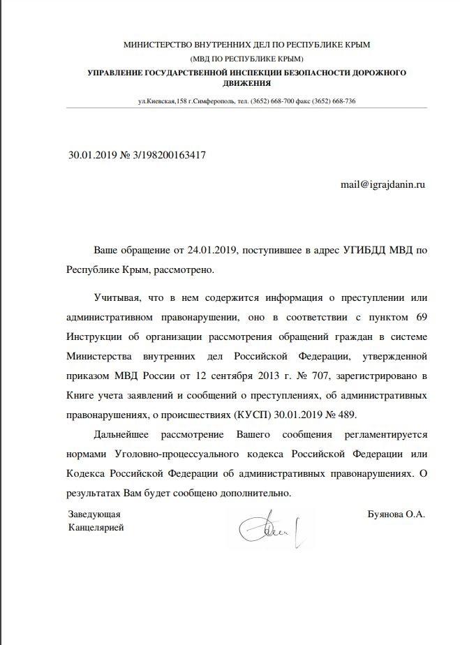 айГражданинОтправлено 24.01.2019: "Управление ГИБДД МВД по Республике Крым"