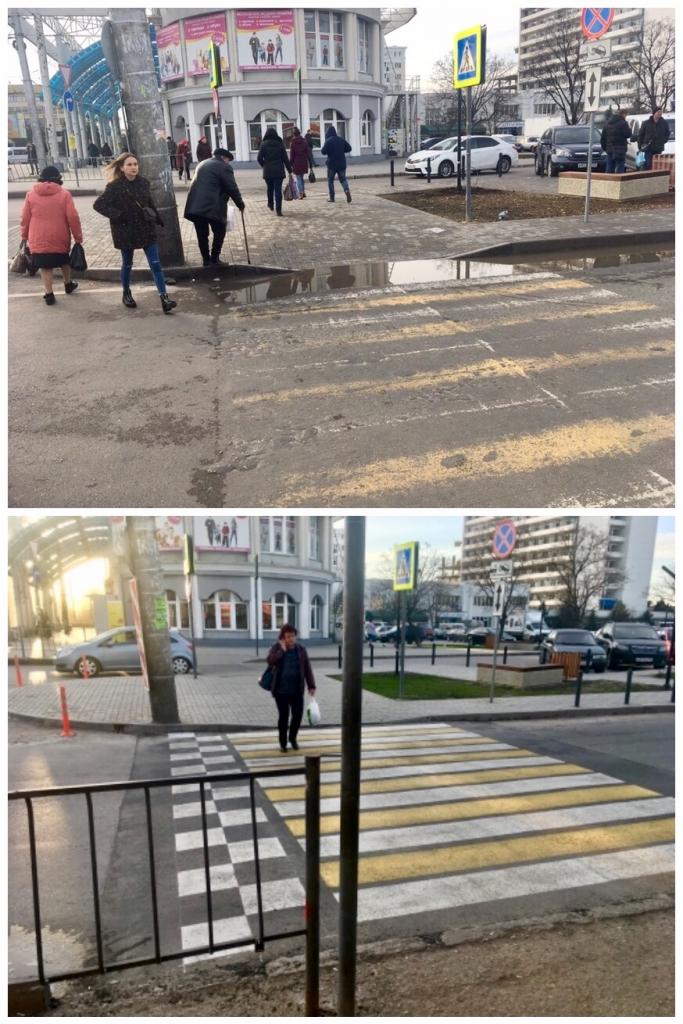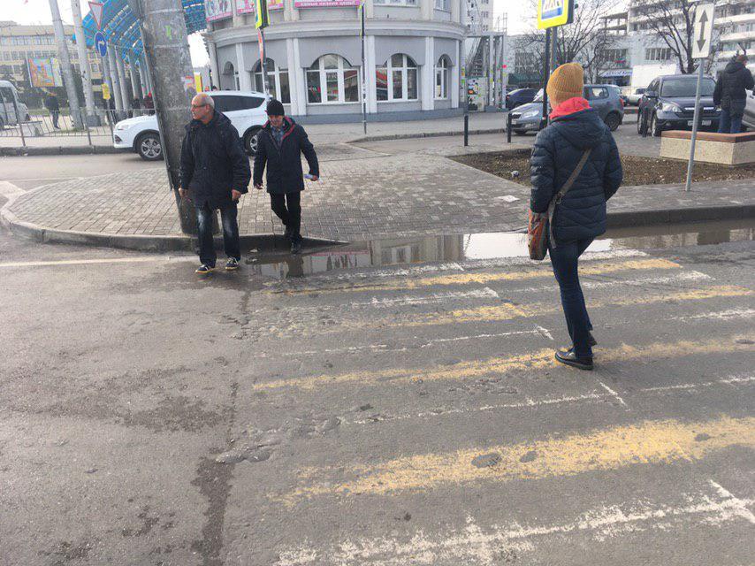Александр КравчукПроблема закрыта. Замечтательно! Переход отремонтировали и приподняли над уровнем дорожного полотна до уровня пешеходной части, нанесли новую разметку. Теперь лужа не будет мешать переходить дорогу по правилам :)