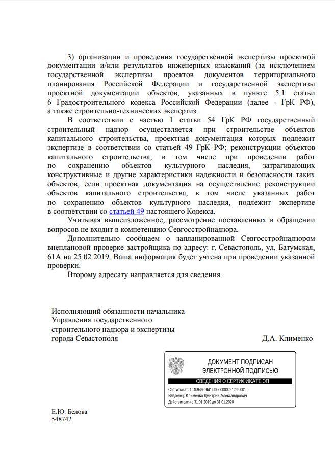 айГражданинОтправлено 01.02.2019: "Управление государственного строительного надзора и экспертизы города Севастополя (Севгосстройнадзор)"