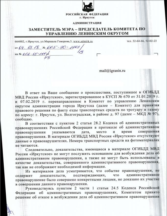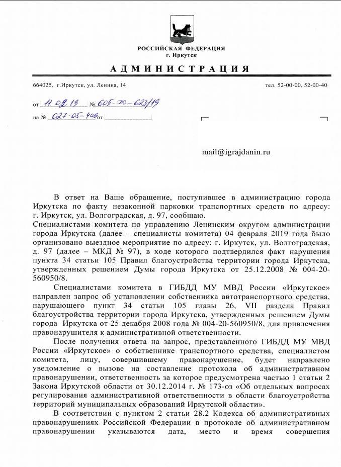 айГражданинОтправлено 28.01.2019: "Администрация города Иркутска"