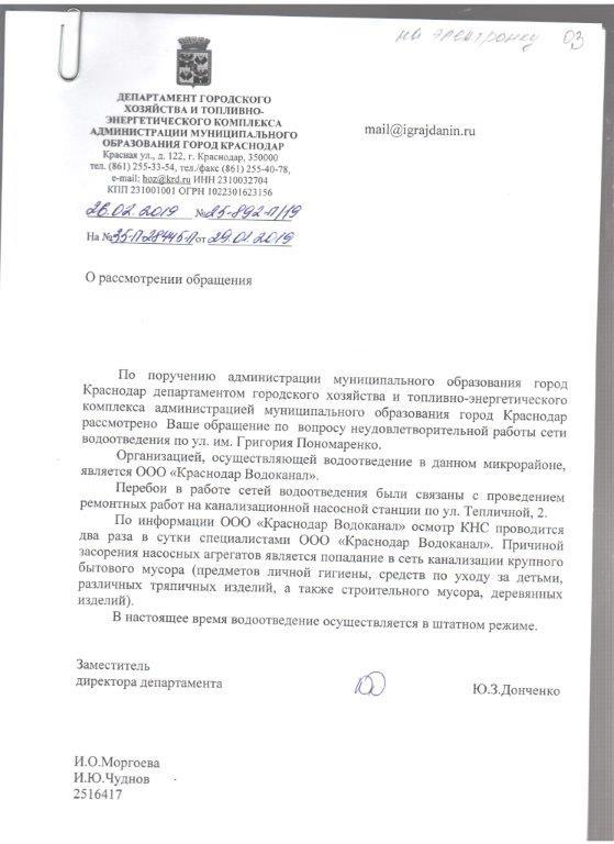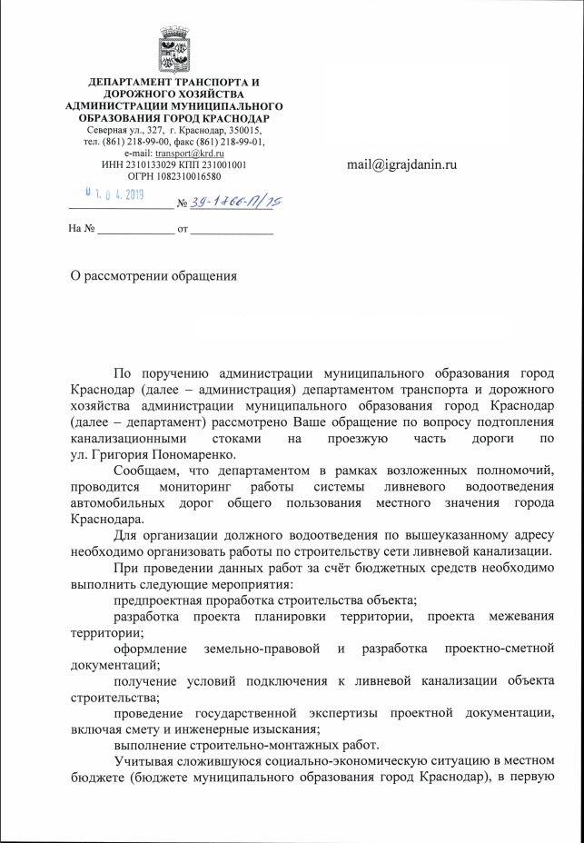 айГражданинОтправлено 01.03.2019: "Администрация муниципального образования г. Краснодар"