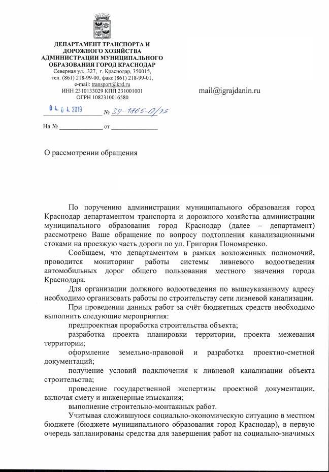 айГражданинОтправлено 28.01.2019: "Администрация муниципального образования г. Краснодар"