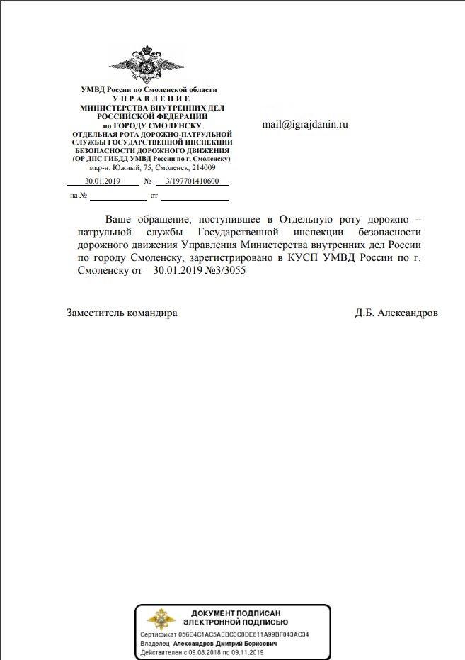 Отправлено 29.01.2019: "УГИБДД УМВД России по Смоленской области"