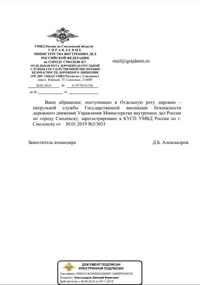 Отправлено 29.01.2019: "УГИБДД УМВД России по Смоленской области"