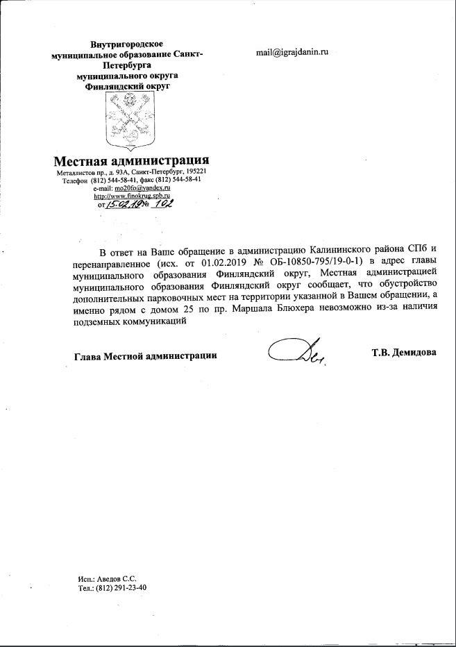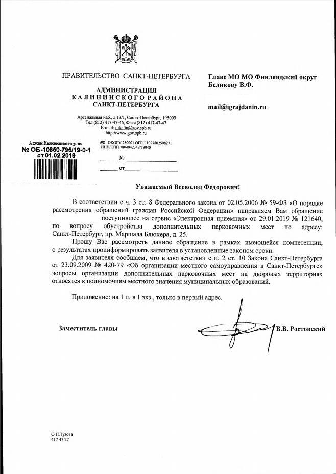 айГражданинОтправлено 29.01.2019: "Администрация Калининского района Санкт-Петербурга"