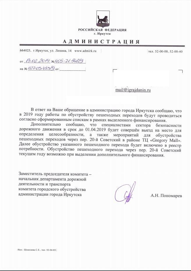 айГражданинОтправлено 30.01.2019: "Администрация города Иркутска"