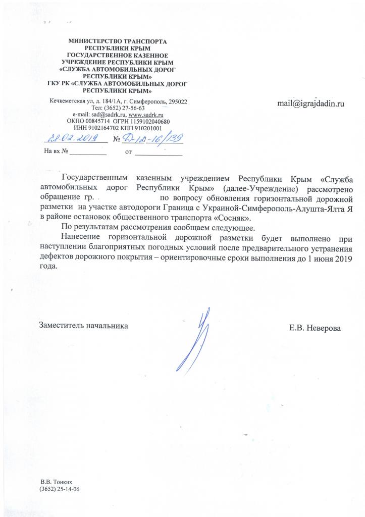 айГражданинОтправлено 31.01.2019: "Служба автомобильных дорог Республики Крым"
