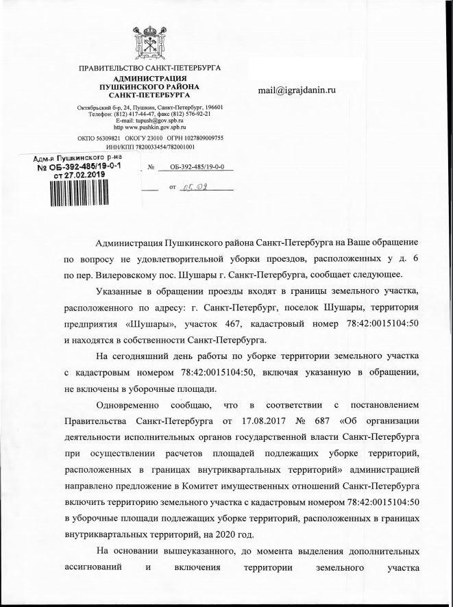 айГражданинОтправлено 04.02.2019: "Администрация Пушкинского района Санкт-Петербурга"