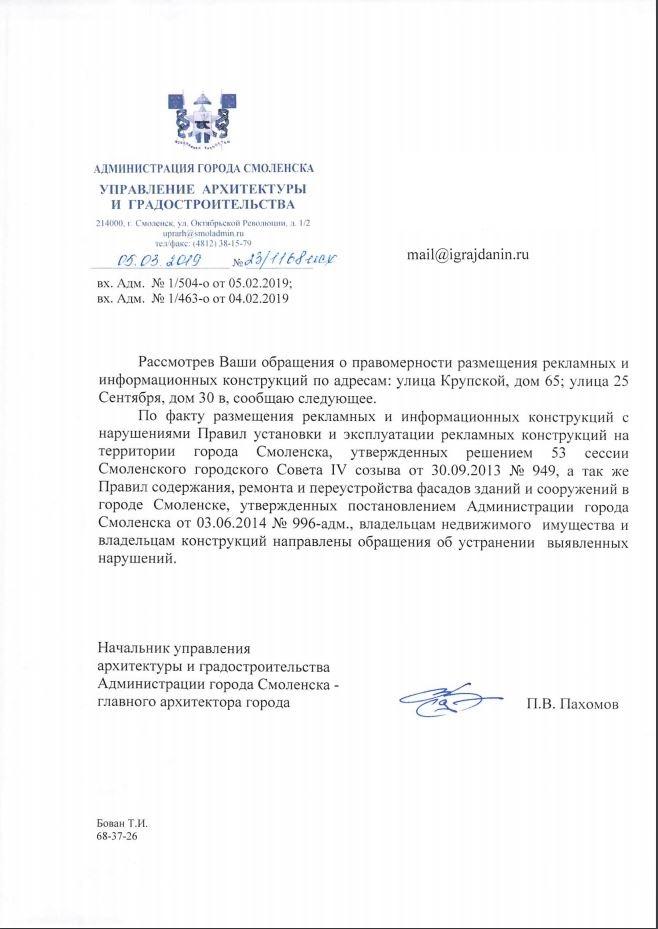 айГражданинОтправлено 25.03.2019: "Администрация города Смоленска"