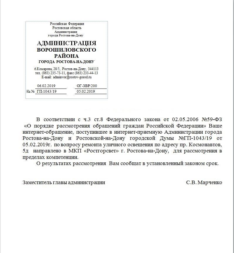 айГражданинОтправлено 04.02.2019: "Администрация города Ростов-на-Дону"