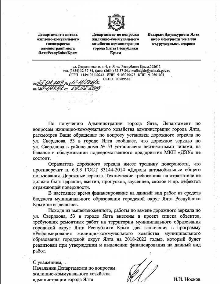 айГражданинОтправлено 05.02.2019: "Администрация города Ялты республики Крым"