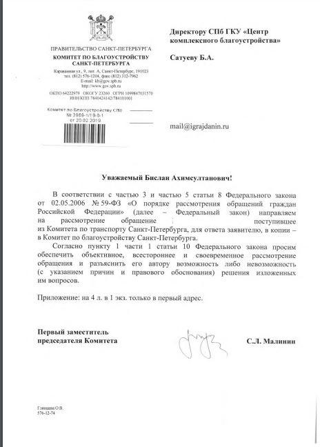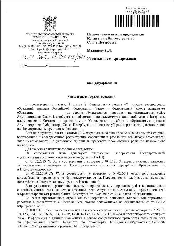 айГражданинОтправлено 05.02.2019: "Администрация Санкт-Петербурга"